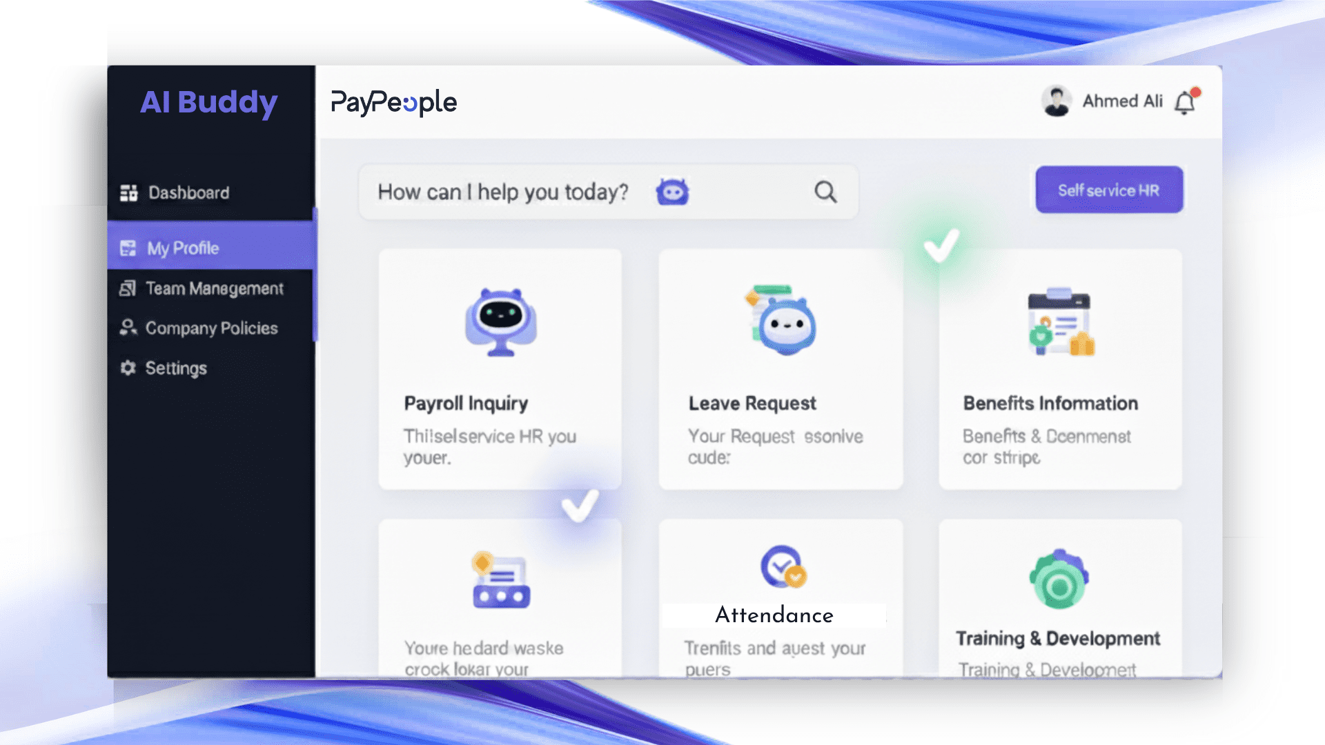 PayPeople introduces a smart self-service assistant designed to simplify everyday HR interactions for both employees and HR teams. Through intuitive text or voice commands, employees can manage leave requests, access payroll details, and submit expenses instantly. This intelligent assistant ensures quick responses, improved accuracy, and a seamless user experience—available anytime, anywhere.