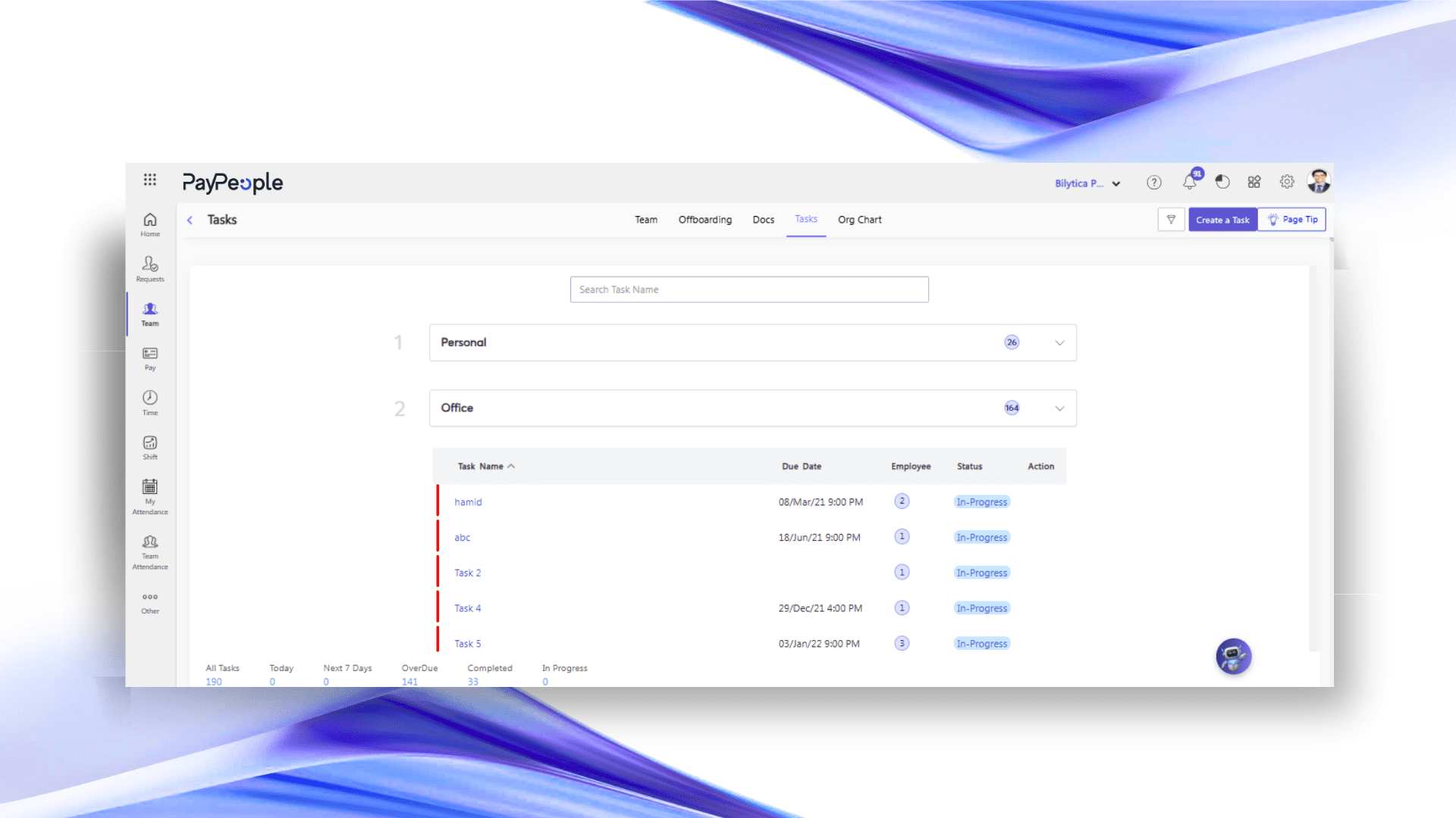 With PayPeople task management software, HR teams can assign, monitor, and track tasks without missing deadlines. Use built-in reminders, priority settings, and progress tracking to ensure accountability. Keep everyone aligned and productive with full visibility into ongoing HR activities.