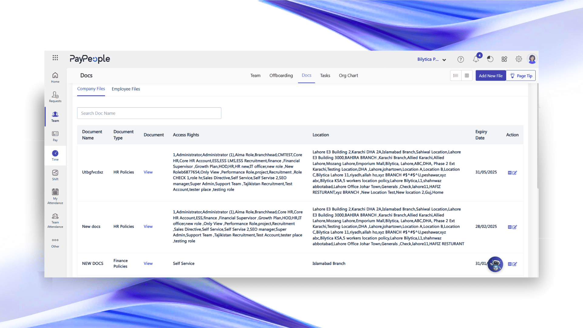 Say goodbye to paperwork with PayPeople’s digital HR document management system. Securely store, manage, and retrieve sensitive employee files in seconds with advanced encryption and access control. Protect your HR data, stay compliant, and ensure that your records are always safe, organized, and easily accessible.