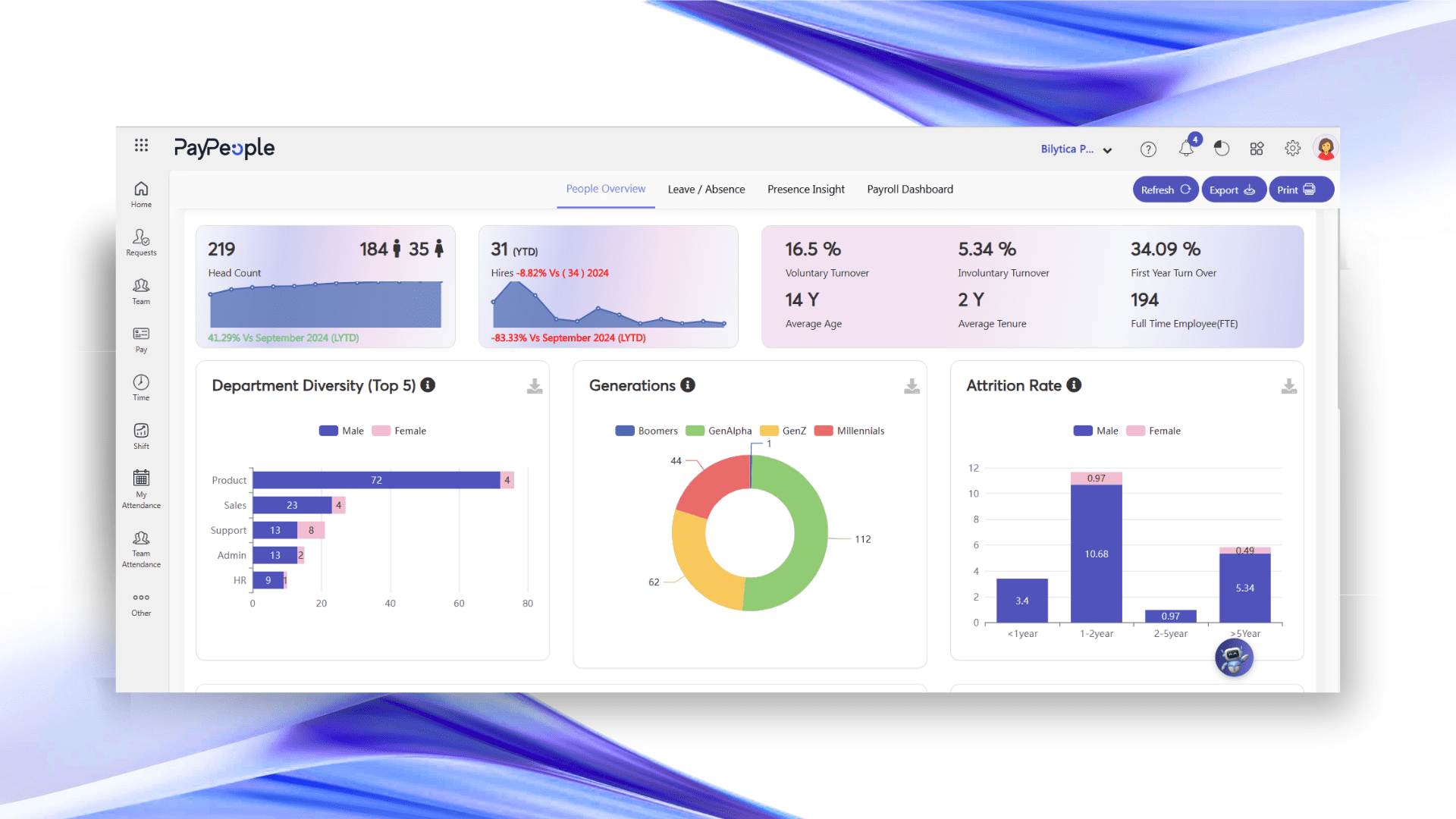 Make smarter decisions with PayPeople HR Analytics Software in Pakistan that turns your HR data into actionable insights. Monitor performance, attendance, and workforce trends through real-time dashboards. Identify key opportunities, optimize employee productivity, and elevate your HR strategy with intelligent, data-driven analytics.