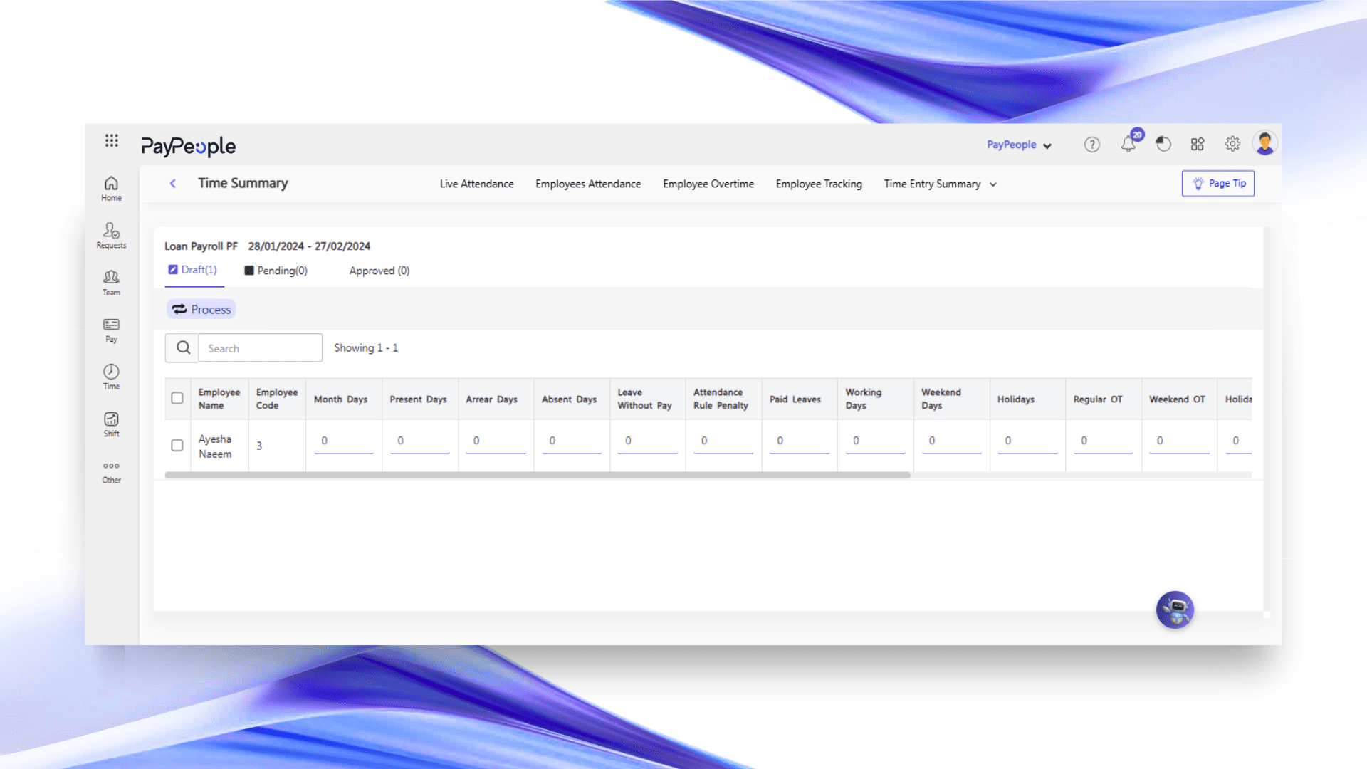With PayPeople’s user-friendly time entry system, employees can log work hours in just seconds. This reduces manual errors and saves time, making daily time tracking quick, smooth, and stress-free.